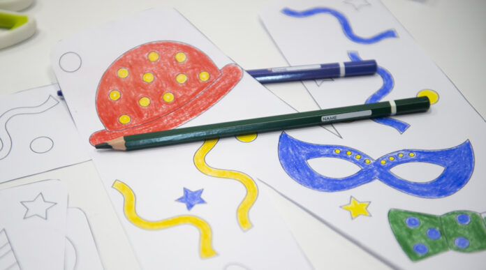 I bimbi colori alla mano hanno creato e colorato le loro maschere, mentre coriandoli e stelle filanti coloravano la stanza.