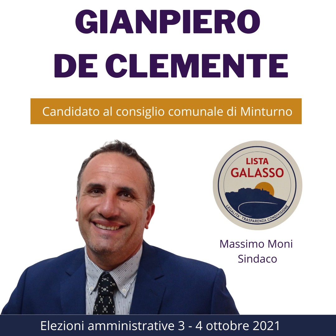 Gianpiero De Clemente (nella foto di copertina con il candidato sindaco Massimo Moni) è nato a Minturno il 17 settembre 1972.