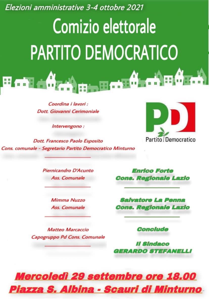 Il Partito Democratico chiude la sua campagna elettorale con un evento in esclusiva che si terrà mercoledì 29 settembre alle ore 18.00 in Piazza Sant’Albina a Scauri.