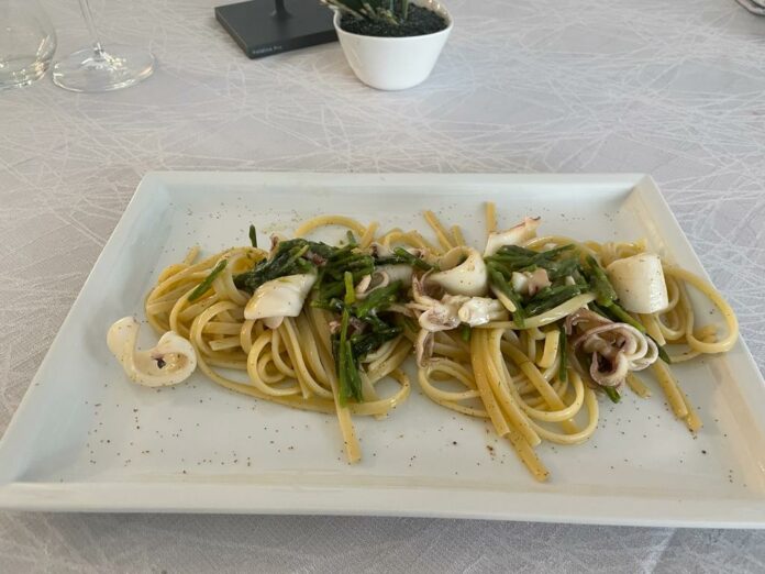 LA RUBRICHA DEL PESCE – MARE NOSTRUM: I calamaretti sono i calamari di piccole dimensioni che solitamente per legge devono essere di dimensioni di 7/8 cm. Quelli per eccellenza nel Golfo sono una prelibatezza e possono essere usati sia per l’antipasto che per il primo e per il secondo piatto. Per l’antipasto si possono fare in guazzetto con piccole bruschette, calamaretti e broccoletti, scottati con carciofi alla julenne (zuppa di verdure i cui ingredienti vengono tritati finemente e cotti nel brodo). Per i secondi piatti possono essere fatti fritti, la famosa vota piatti, grigliati. Lo Chef Marco Bisleti questo mese propone un primo piatto. Linguine con calamaretti e asparagi ricetta per quattro persone: 500 grammi di linguine possibilmente trafilata in bronzo, 200 grammi di asparagi, 600 grammi di calamari puliti, 30 cl di olio evo, 20 cl di vino bianco, sale q.b. Per la preparazione: soffriggere olio e aglio, aggiungere i calamaretti e gli asparagi con il vino bianco lasciando sfumare il tutto. Bollire acqua e far cuocere le linguine. Tirarle 5 minuti prima e mettere nella padella con i calamaretti e asparagi, fare amalgamare il tutto portando a cottura. Impostare il tutto. Bon appétit.