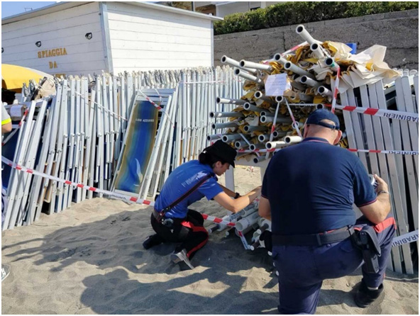 A Formia e Minturno sequestrati ombrelloni e lettini. Carabinieri in azione – Nei scorsi giorni il personale della Stazione Carabinieri di Formia (LT) e Scauri (LT), in collaborazione con i militari della motovedetta CC 816 dell’Arma dei Carabinieri di Gaeta (LT), hanno condotto una serie di accertamenti lungo il litorale del Golfo, dalla località Gianola di Formia (LT) fino alla frazione Scauri di Minturno (LT).