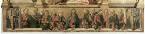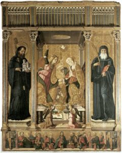 Cristoforo Scacco da Verona, Trittico dell’Annunciazione (Annunciazione tra i Ss. benedettini Onorato e Mauro), tempera e oro su tavola, 1499. Fondi, chiesa di San Pietro Apostolo, Mausoleo Caetani