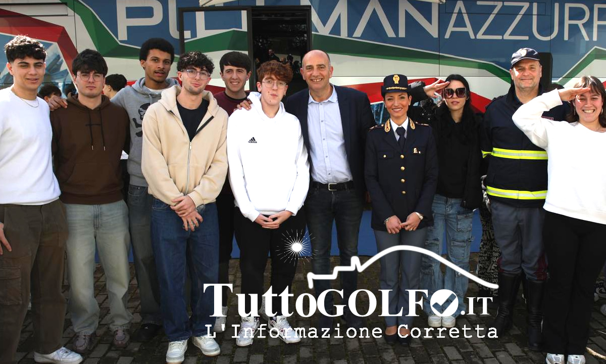 E’ arrivata a Minturno la campagna di sensibilizzazione “Con Guido fai strada” – A chiudere la giornata, all’esterno del liceo gli studenti hanno trovato il pullman blu della