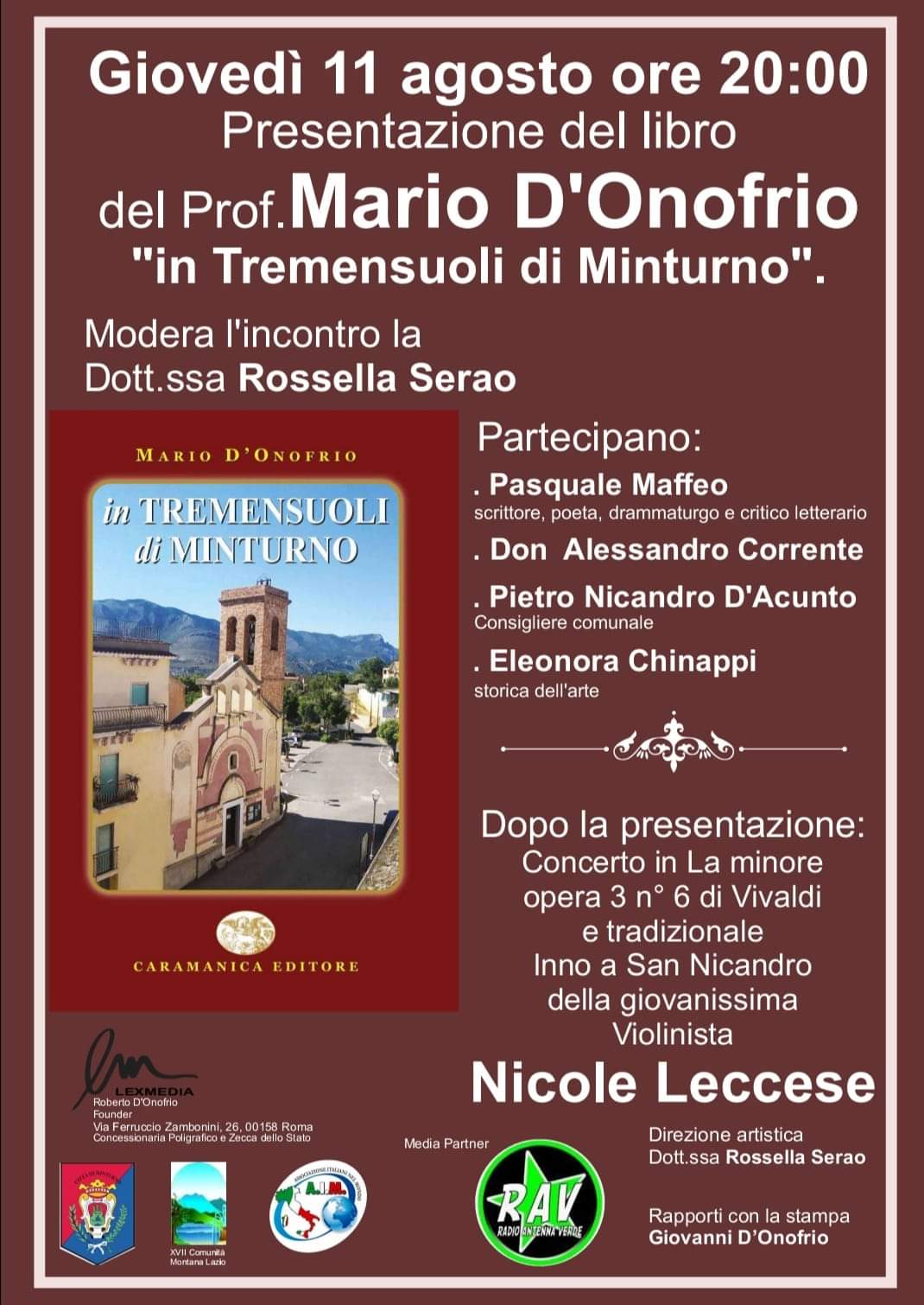 In Tremensuoli di Minturno giovedì 11 agosto ore 20.00 presentazione del libro di Mario D’Onofrio
