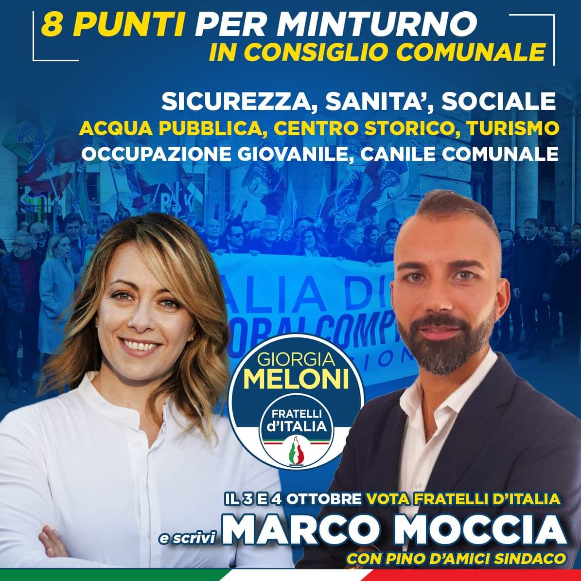 Incontro con l’avvocato Marco Moccia responsabile regionale del Dipartimento Professioni di Fratelli d’Italia. (In una foto con Giorgia Melioni durante la campagna elettorale minturnese). Gli chiedo: Marco cosa ne pensi delle dimissioni del premier Draghi? “Credo siano la diretta conseguenza del caos governativo generato da queste coalizioni eterogenee, ammucchiate per dirla in politichese, che contengono tutto il contrario di tutto, ma che alla fine come unico risultato portano all’ingovernabilità, tra veti incrociati e lotte interne.” Come pensi si sia comportato il tuo partito, Fratelli d’Italia, in questo anno e mezzo di opposizione? “Credo che Giorgia Meloni e l’intera classe dirigente del partito si siano comportati in maniera esemplare, non lo dico per piaggeria, sempre sul pezzo e mai banali, propositivi sempre e comunque per risollevare la nostra nazione che dopo la pandemia sta affrontando un’altra grave crisi dovuta all’invasione russa dell’Ucraina.” Parlando a livello locale come vedi l’opposizione consiliare di cui due componenti sono di Fratelli d’Italia? “Penso che Francesco Larocca e Pino D’Amici stiano facendo un gran lavoro insieme a Barbara Sardelli, Massimo Moni ed a Romolo Del Balzo a cui auguro una pronta guarigione. Non è facile in cinque tenere la barra dritta contro una maggioranza così variegata ma numerosa. Sono certo però che alla fine i nodi verranno al pettine, io come dirigente di partito sono per l’unità del centrodestra e sono sicuro che grazie al grande lavoro dell’opposizione, gli amici che alle scorse elezioni comunali hanno preso altre strade più comode, già dalle prossime elezioni nazionali rivedranno le loro scelte e torneranno a casa.” Un’ ultima domanda, come giudichi la firma del Sindaco Gerardo Stefanelli a favore della permanenza dell’ex presidente del consiglio Mario Draghi? “Mi fa sorridere che il Sindaco e Presidente della provincia, tra i tanti impegni abbia trovato il tempo per essere tra i soli 1000 sindaci su 8000 pro Draghi. La domanda che gli vorrei porre è la seguente, è sicuro che i cittadini minturnesi abbiano approvato questa presa di posizione? Io alla luce dei danni prodotti dal governo Draghi, ossia, l’aumento del debito pubblico, l’aumento dello spread, gli aumenti di gas, energia elettrica e benzina passando per una gestione scriteriata dell’immigrazione clandestina, credo proprio di no.” Domenica 25 settembre si avvicina.