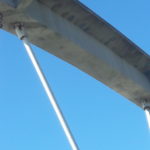 Tra i risultati della ricerca di Google si fa strada (è proprio il caso di dirlo) un secondo ponte, quello più recente progettato dall’ingegnere Michele Mele e costruito tra il 1991 ed il 1993 per snellire il traffico della statale SS7 Appia. Si tratta di un ponte di tipo “strallato” nel quale l’impalcato (la strada) è retto da una serie di cavi (gli stralli) ancorati a piloni o torri di sostegno.