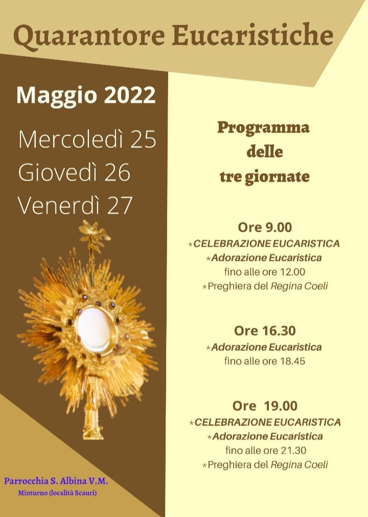 Scauri: Quarantore Eucaristiche Chiesa Santa Albina 3 giornate 25 – 26 – 27 Maggio