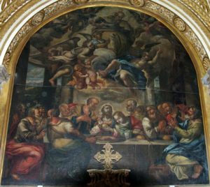 La tavola qui presa in esame, è stata datata al XVI sec., in correlazione temporale con un’altra importante opera, probabilmente dello stesso autore, una “Ultima Cena” oggi sotto restauro, anch’essa presente nella già cattedrale di San Pietro a Minturno, nella cappella del Santissimo Sacramento. L’accostamento delle due opere allo stesso autore è dato dal fatto che, anche nell’Ultima Cena della cattedrale di San Pietro, compare Dio, il quale, come un regista vero e proprio, indica al Cristo di identificare il traditore e di istituire l’Eucarestia.