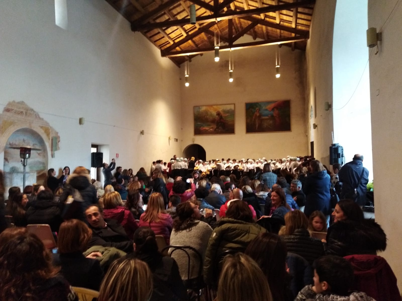 È giunta al traguardo la I fase del progetto “Un golfo d’Amare – Alla scoperta della civiltà contadina”Alla scoperta della civiltà contadina: l’Istituto Comprensivo M. E. Scauro è di scena al castello baronale di Minturno, promosso presso l’Istituto Comprensivo Marco Emilio Scauro dall’Associazione Culturale Gruppo Folk, I Giullari. Gli alunni delle classi IV e V dei plessi Balbo e Scalo, si sono esibiti nella sala dei Baroni del Castello di Minturno, dinanzi ad un folto e coinvolto pubblico. L’iniziativa, attuata allo scopo di promuovere e valorizzare la storia del nostro paese salvaguardandone le tradizioni, ha pienamente raggiunto l’obiettivo primario, quello di rafforzare nei giovani allievi il senso di appartenenza al territorio, prendendo consapevolezza delle proprie radici culturali. La messa in scena di una giornata tipica di famiglie di contadini, ha consentito ai presenti di fare un tuffo nel passato, di cogliere le caratteristiche del lavoro nei campi, ma anche il valore dell’omaggio alla Madonna delle Grazie in occasione della Sagra delle Regne. Il fluido susseguirsi di canzoni tradizionali, di balli a tema campestre e di simpatiche scenette di vita quotidiana, ha piacevolmente intrattenuto i presenti, rendendo omaggio alla memoria del presidente onorario dell’associazione, Giuseppe Conte, che con impegno e dedizione si è sempre adoperato affinché le tradizioni minturnesi venissero conosciute e “vissute” anche dalle giovani generazioni. Eccellente la prestazione dei bambini, veri interpreti dell’anima traettese: toccando le corde dello strumento memoria- ricordo e strappando sane risate, hanno saputo conquistare tutti. Momenti di sana crescita, quelli vissuti dagli alunni del Comprensivo, grazie alla realizzazione dei questo progetto. Le autorità presenti, nelle persone della dirigente scolastica M. Diana, del sindaco e dell’assessore M. Nuzzo, hanno colto l’occasione per ringraziare tutti coloro che si sono adoperati per la preparazione della manifestazione, creando un’opportunità per i giovani non solo di conoscere e promuovere le tradizioni del proprio paese, ma anche di esprimere se stessi attraverso le arti. Un’iniziativa dunque, con una forte connotazione positiva, che proseguirà nell’attuazione della seconda fase progettuale, con il coinvolgimento degli alunni delle classi IV e V dei plessi di Marina e Golfo, nella seconda parte dell’anno scolastico.