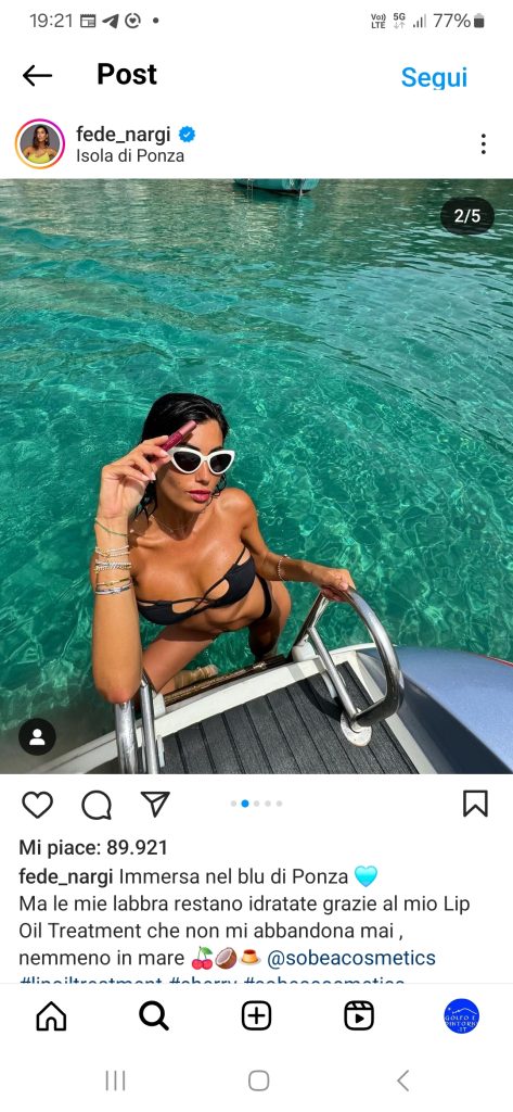 A distanza di un anno la showgirl Federica Nargi è tornata a Ponza. La conferma è arrivata tramite un post su Instagram con una foto con Ponza nello sfondo, aggiudicandosi in poco tempo migliaia di cuoricini e commenti. La ex velina in vacanza in una delle più belle isole d’Italia ha trascorso qualche giorno tra mare sole e relax. Ponza si conferma nuovamente la meta estiva ideale di tanti VIP che decidono di trascorrere giorni lieti tra le bellezze paesaggistiche delle isole ponziane. Di seguito il post: