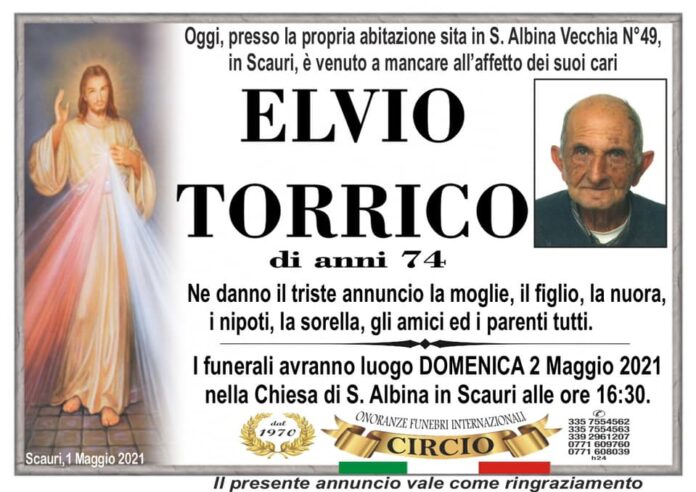 Le esequie si terranno domenica 2 maggio alle ore 16.30 nella Chiesa di Santa Albina V.M. officiate dal parroco don Antonio Cairo.