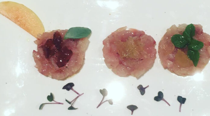 Ricciola, pesce azzurro con carni bianche. Le proposte del ristoratore Michele Chinappi – La ricciola è un pesce a metà tra il pesce azzurro e il pesce bianco. La sua carne è salutare, tendente al marrone, molto compatta e ha proprietà nutritive come il pesce azzurro ma nello stesso tempo la sua carne è saporita come il pesce bianco. La ricciola è un pesce che può essere utilizzato, ad esempio, come carpaccio oppure può essere utilizzato con la pasta e pomodorini mentre per secondo può essere cucinato al forno con patate o con carciofi oppure può essere cucinato all’acqua pazza cioè un brodetto con acqua di mare e pomodorini. Lo chef Marco Bisleti oggi propone un tris di tartare di ricciola.
