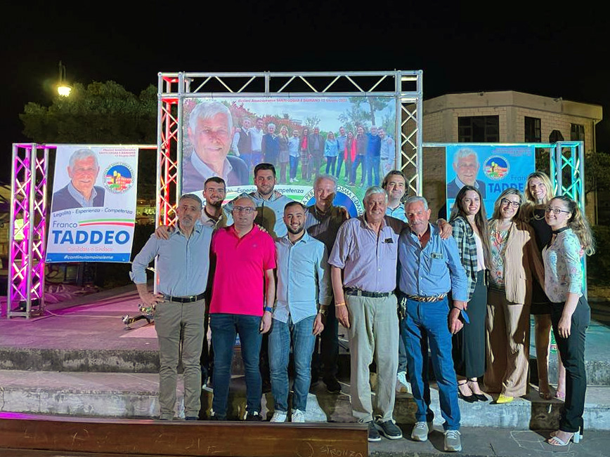 Una piazza Ex Ferrovia a Grunuovo gremita, con persone che attentamente e con interesse hanno ascoltato tutti gli interventi, ha accolto nella serata del 3 giugno, il primo vero “comizio” della lista “Alleanza per Santi Cosma e Damiano – Continuiamo insieme”. Il sindaco uscente/candidato Franco Taddeo ha aperto la serata illustrando le due brochure approntate per questa campagna elettorale, già pubblicate sul sito francotaddeosindaco.it e sul canale social della coalizione, contenenti rispettivamente il programma elettorale e il report delle attività ed opere realizzate dall’attuale Amministrazione nel quinquennio che volge al termine. Sono intervenuti tutti i candidati, chi entrando nel dettaglio delle attività eseguite, e chi esponendo punti e direttrici del programma elettorale. Sia per il “fatto” che per il “da farsi”, tutte le informazioni, nella loro completezza, saranno fornite anche negli altri due incontri pubblici già in programma i prossimi 7 e 10 giugno.