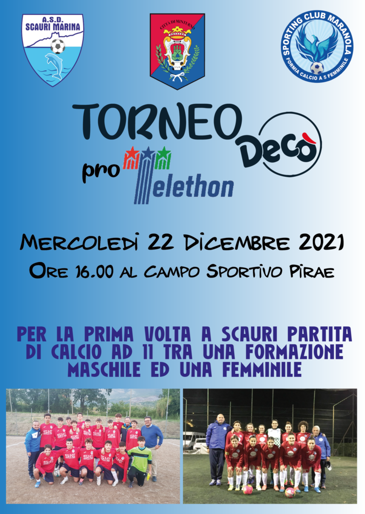 Le due squadre si disputeranno, in perfetto clima natalizio, il Trofeo Decò pro Telethon, che vedrà anche la presenza di uno stand per la vendita benefica di cuori di cioccolato per sostenere i progetti di ricerca Telethon. Ingresso libero nel rispetto di tutte le norme di prevenzione anti-covid.