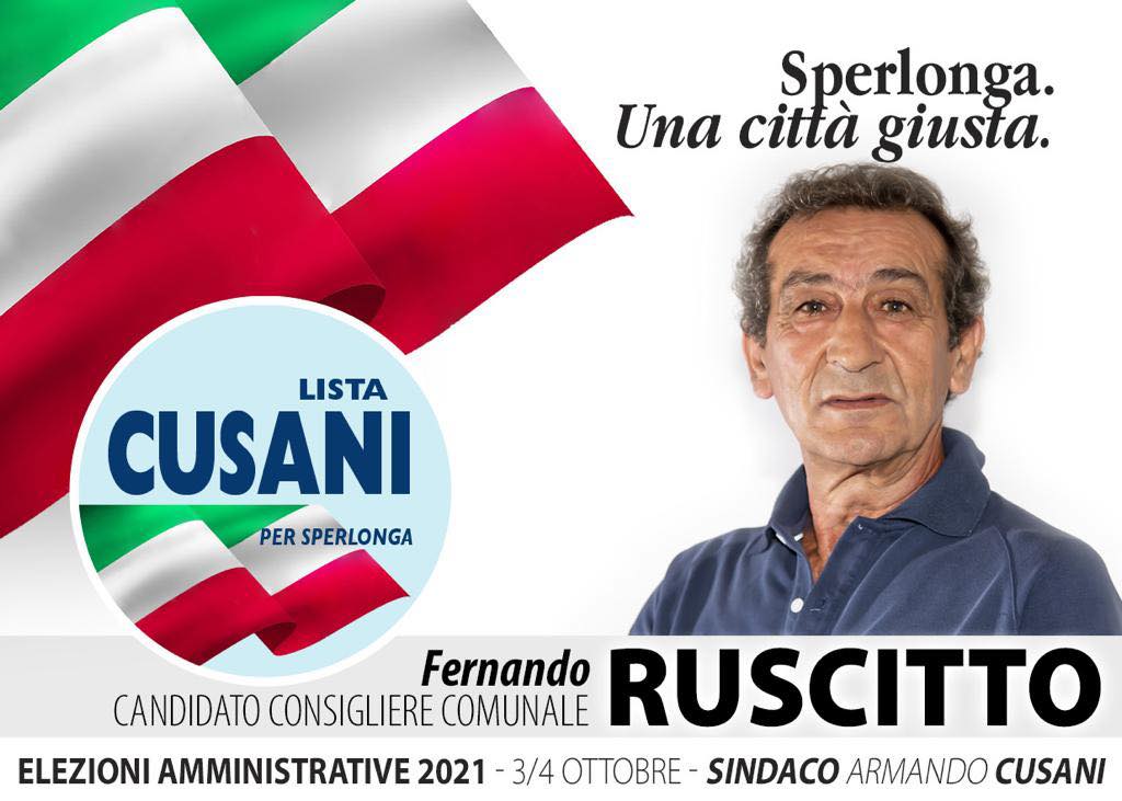 La parola a Fernando Ruscitto, candidato al consiglio comunale di Sperlonga a sostegno del sindaco uscente Armando Cusani con il movimento civico Lista per Cusani, si definisce “il cittadino al servizio della comunità”.