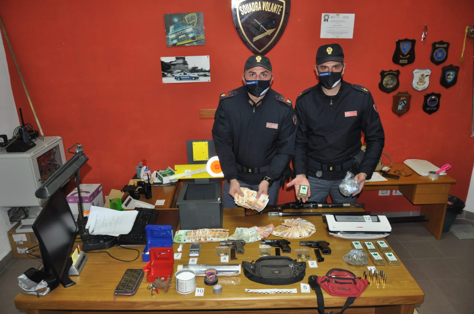 La Polizia di Stato di Latina ha arrestato due pregiudicati locali, trovati in possesso di tre pistole, di un fucile e di più di mezzo chilo di sostanza stupefacente.
