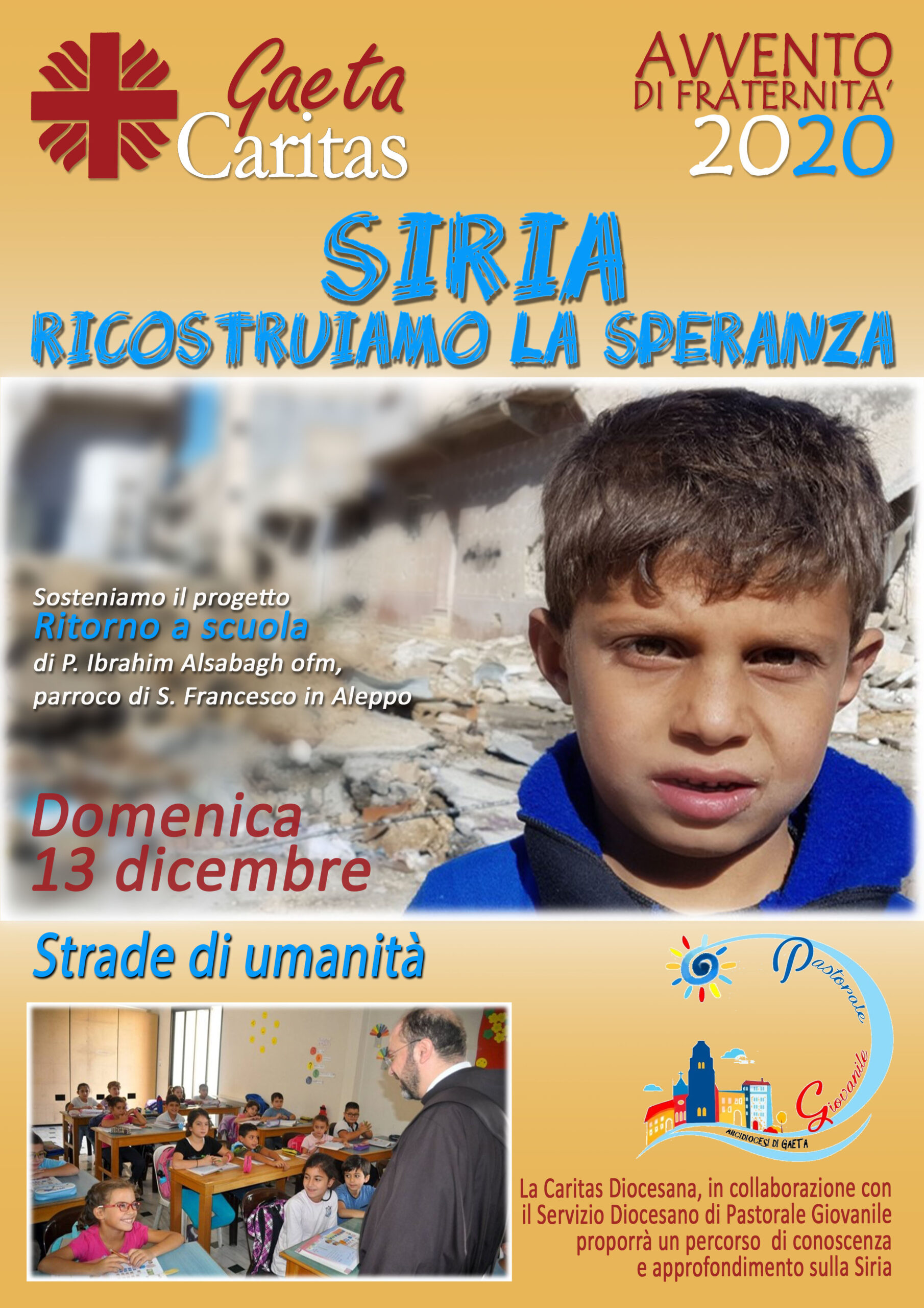 “Ritorno a scuola” è il nome del progetto avviato dal parroco siriano e che l’Arcidiocesi di Gaeta attraverso la Caritas diocesana ha scelto di condividere e sostenere nell’ormai consueto appuntamento dell’Avvento di Fraternità.