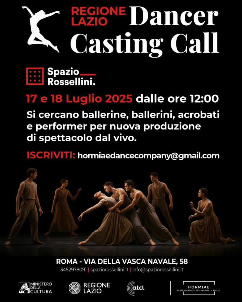 Casting per Ballerini, Acrobati e Performer. Hormiae Dance Company: ecco come inscriversi – La Hormiae Dance Company supporta un’importante casting dedicata a ballerini, ballerine, acrobati e performer per una nuova, ambiziosa produzione di spettacolo dal vivo. L’appuntamento è fissato per giovedì 17 e venerdì 18 luglio 2025, a partire dalle ore 12:00, presso gli spazi di Via della Vasca Navale 58, a Roma.
