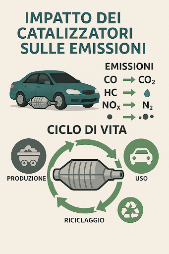 La parte superiore dell’infografica si concentra sull’influenza dei catalizzatori sulle emissioni: