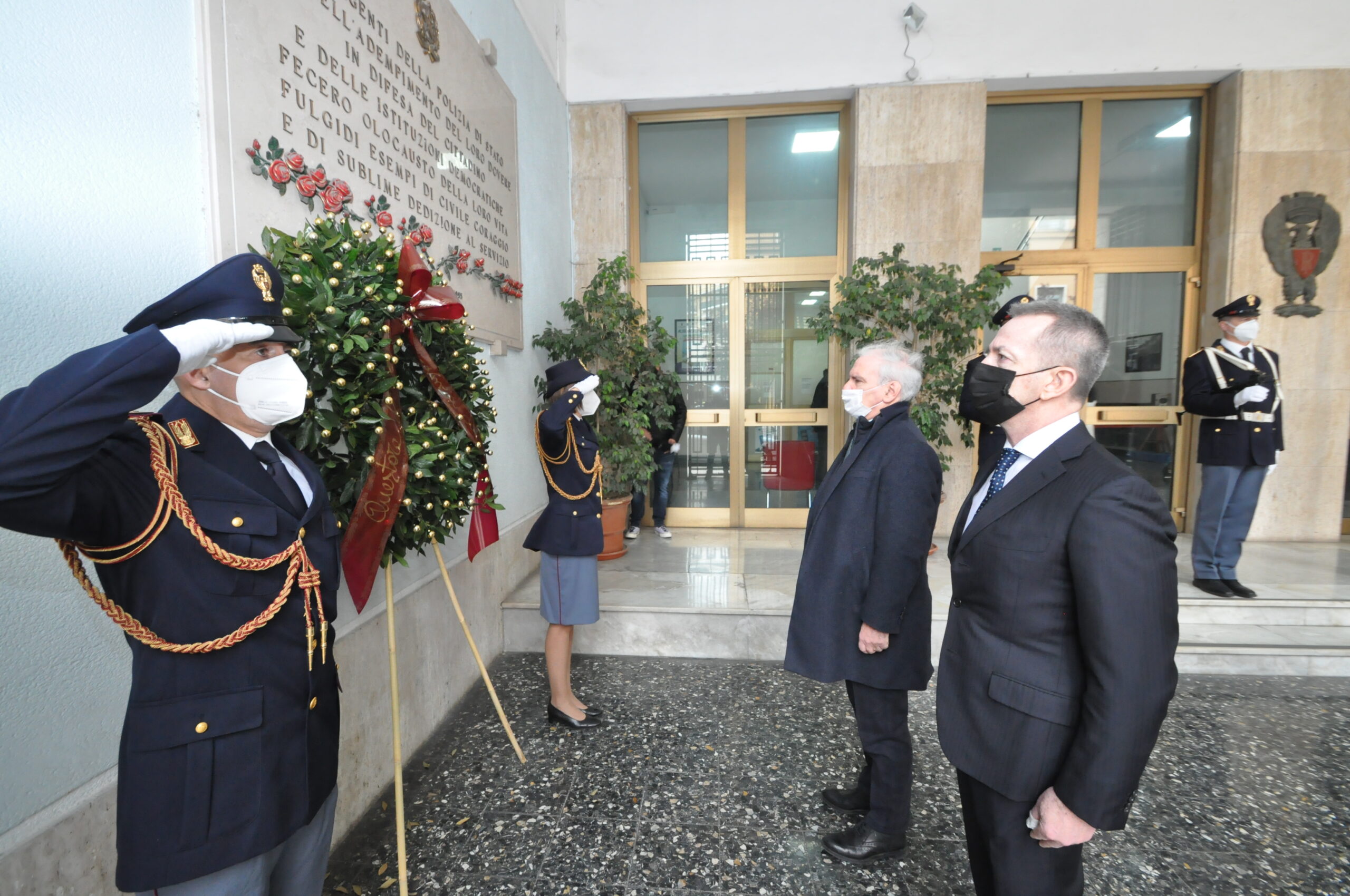 Nel giorno della ricorrenza del 169° anniversario della fondazione della Polizia di Stato, il Questore di Latina Michele Maria Spina, alla presenza del Prefetto Maurizio Falco, ha deposto una corona di alloro presso la lapide commemorativa posta all’ingresso della Questura, in memoria dei caduti della Polizia di Stato che hanno sacrificato la loro vita per il servizio.