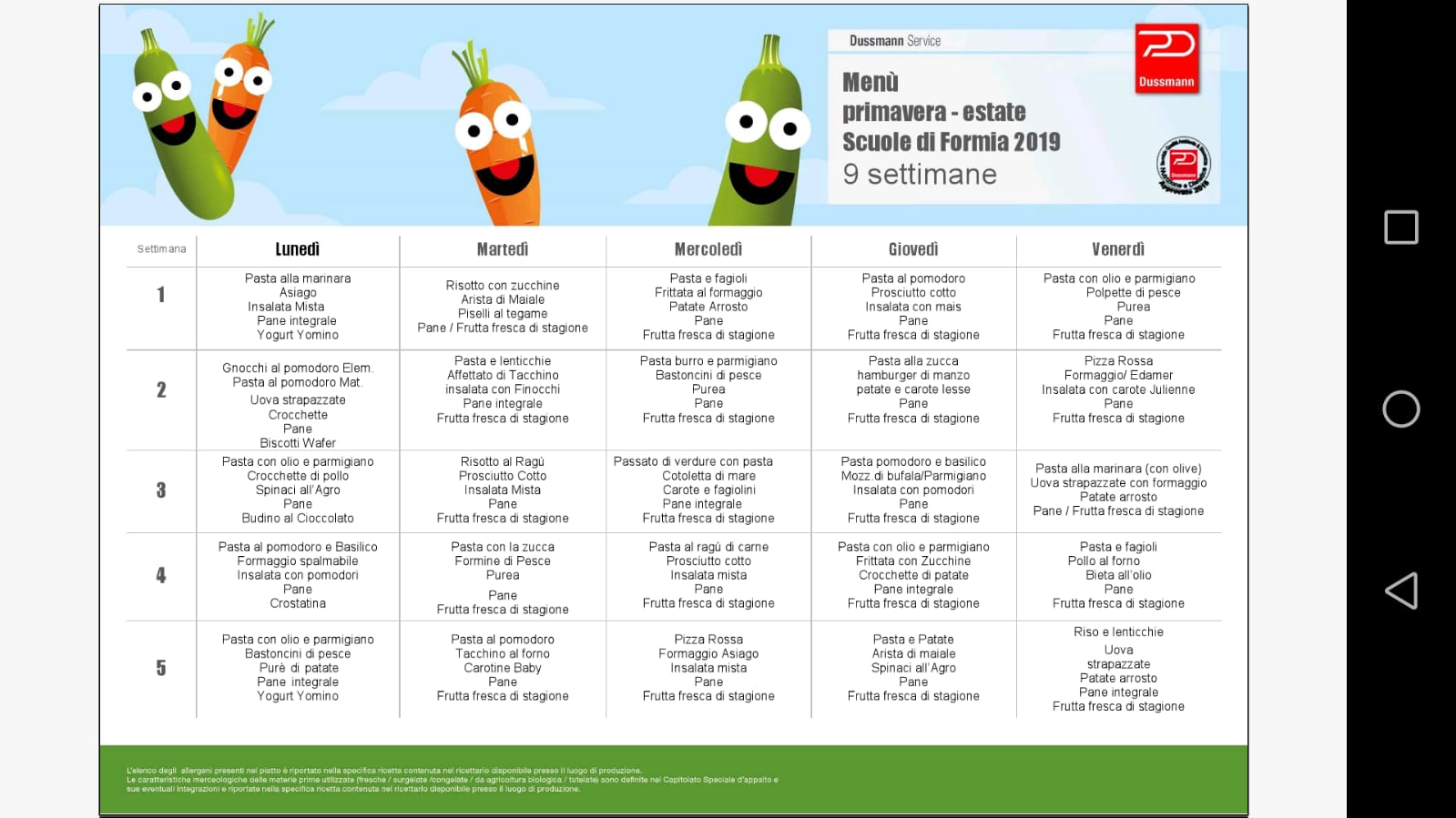Gli affettati o i salumi vengono somministrati 1 volta a settimana, il che è positivo, in quanto viene ridotto il quantitativo di sale e conservanti settimanale. Dunque i menu passano i test nutrizionali prevedendo cereali integrali, frutta e verdura di stagione e pesce azzurro, ossia pasti fondamentali per lo sviluppo psico-fisico del bambino.