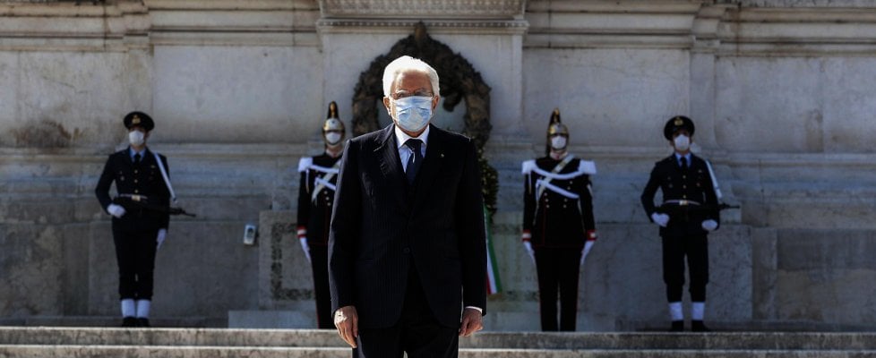 Questo 25 aprile – Festa della Liberazione – è stato diverso da tutti gli altri anni. Una cerimonia commovente e struggente. Nessun codazzo di politici e militari ma il Capo dello Stato da solo e in quella solitudine ha rappresentato veramente tutto il popolo italiano. Il presidente della Repubblica Sergio Mattarella con la mascherina si è recato questa mattina da solo, senza alcun seguito, all’altare della Patria per la festa della Liberazione. In cima alla scalinata lo attendevano due corazzieri con la mascherina, che hanno portato una corona al sacello del milite ignoto, mentre un trombettiere dei carabinieri suonava “Il Silenzio”. Un omaggio intimo, in una forma quasi privata. Nessuna autorità, né civile, né militare, al seguito. Mattarella si è tolto la mascherina solo al momento della deposizione della corona. Poi se l’è rimessa, ed è ridisceso così le scale. Un’immagine potente. È, per la prima volta, una festa della Liberazione senza cortei, né manifestazioni pubbliche, né discorsi. Il capo dello Stato era atteso quest’anno in Toscana, in uno dei luoghi delle stragi nazifasciste. “La pandemia ci costringe a celebrare questa giornata nelle nostre case”, afferma il Presidente con rimpianto. E così si affida a un discorso scritto, collocato per intero nella drammatica vicenda di questi mesi: “Fare memoria della Resistenza, della lotta di Liberazione, di quelle pagine decisive della nostra storia, dei coraggiosi che vi ebbero parte, significa ribadire i valori di libertà, giustizia, e coesione sociale, che ne furono alla base, sentendoci uniti intorno al Tricolore. L’Italia ha superato, nel Dopoguerra, ostacoli che sembravano insormontabili. Le energie positive che seppero sprigionarsi in quel momento portarono alla rinascita. Il popolo italiano riprese in mano il proprio destino. La ricostruzione cambiò il volto del nostro Paese e lo rese moderno, più giusto, conquistando rispetto e considerazione nel contesto internazionale dotandosi di antidoti contro il rigenerarsi di quei germi di odio e follia che avevano nutrito la scellerata avventura nazifascista. È la data fondatrice della nostra esperienza democratica di cui la Repubblica è presidio con la sua Costituzione.