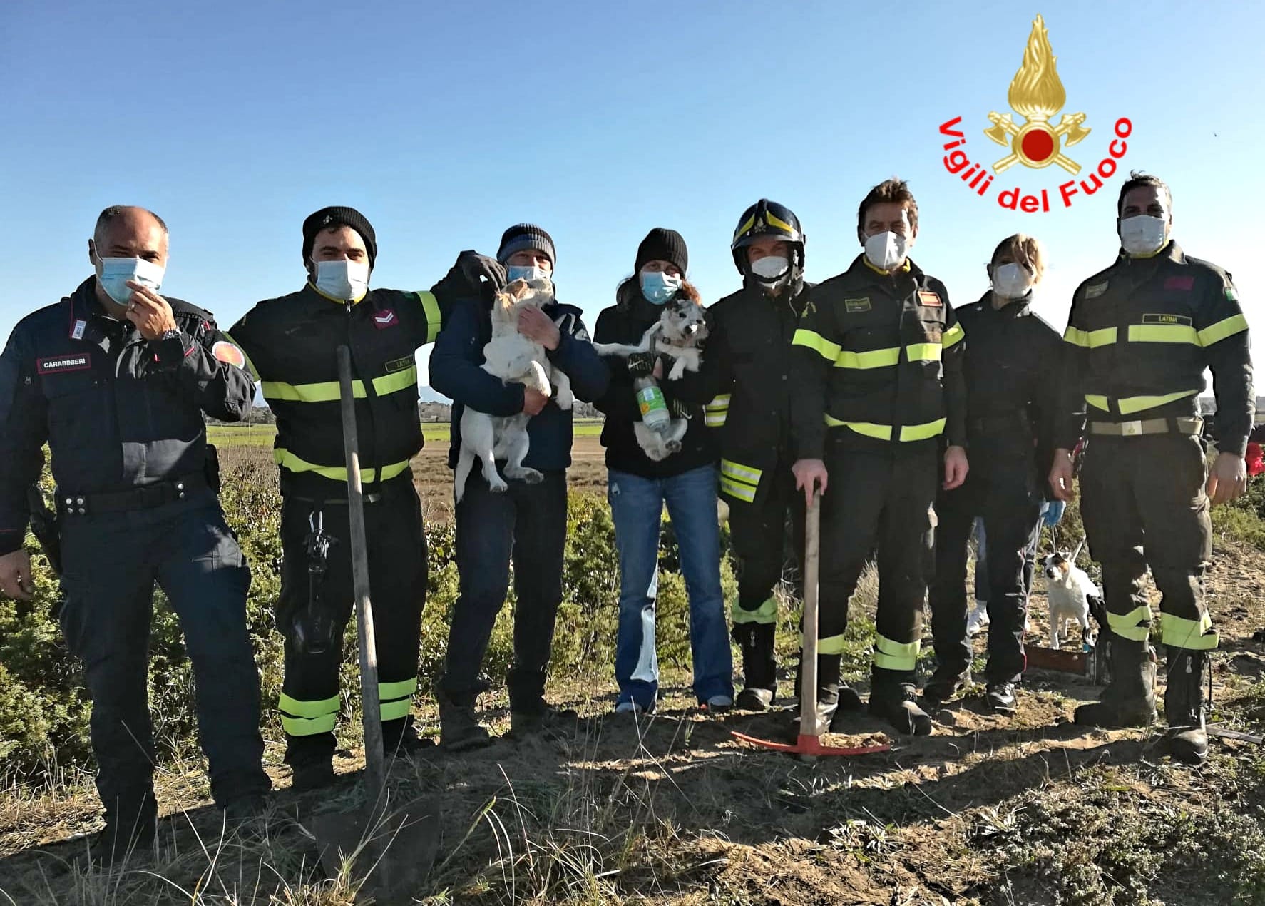 Dopo averli individuati con la termo camera si procedeva al tagliato dei rovi e scavare a mano per dar modo ai cuccioli di uscire e tornare tra le braccia del proprio padrone.