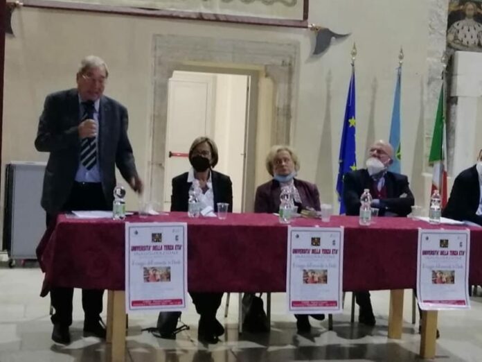 FONDI, UNIVERSITA’ DELLA TERZA ETA’ – Domenica 7 novembre, nella splendida cornice del Palazzo Caetani di Fondi, l’Associazione culturale UNI 3, Università della terza età, ha inaugurato l’anno accademico 2021/22 con un incontro letterario. L’argomento scelto dal direttivo, e non poteva essere altrimenti (questo è l’anno in cui si commemorano i 700 anni dalla scomparsa del Sommo Poeta) è stato “Il viaggio dell’umanità in Dante”.