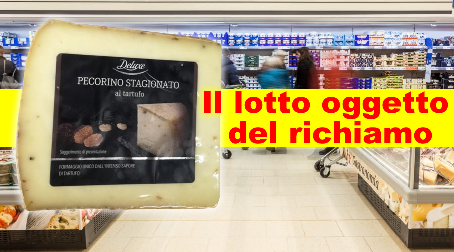Richiamo per listeria. E’ un formaggio Deluxe – Nuovo richiamo alimentare per rischio microbiologico pubblicato sul sito del Ministero della Salute in data 13/12/2022 (il richiamo è datato 9/12/2022) e riguarda un formaggio. Denominazione di vendita: Pecorino stagionato al tartufo, Marchio del prodotto: Deluxe, Nome o ragione sociale dell’OSA a nome del quale il prodotto è commercializzato: Lidl Italia, Lotto di Produzione: TA222744, data di scadenza o termine minimo di conservazione: 19/03/23, Descrizione peso/volume unità di vendita: 180g ca. (peso variabile), Marchio di identificazione dello stabilimento/del produttore: IT0929CE, Nome del produttore: Rocca Toscana formaggi S.r.l., Sede dello stabilimento: Via Puccini, 79 – 52100 Arezzo.
