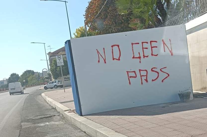 FORMIA, GAETA – Atti vandalici nel comune di Formia e Gaeta eseguiti dalla stessa mano. Essere contrari al green pass è un parere che viene rispettato anche se non condiviso da tutti, ma compiere atti vandalici è un reato. Scrivetelo sui social, rivendicate le vostre idee comunicando su WhatsApp o Telegram ma non imbrattate la città. Vedere il degrado porta solo ad un impoverimento della città.