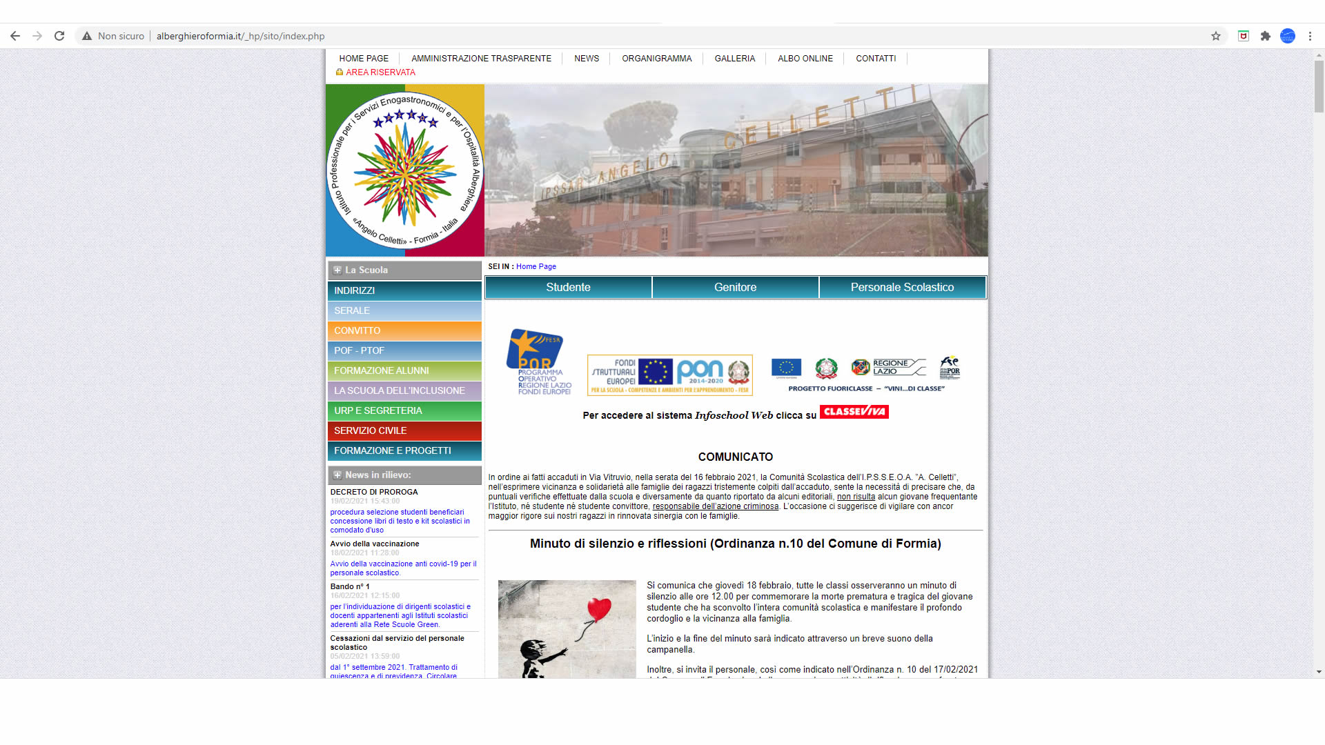 L’Istituto Alberghiero di Formia comunica: “In ordine ai fatti accaduti in Via Vitruvio, nella serata del 16 febbraio 2021, la Comunità Scolastica dell’I.P.S.S.E.O.A. ”A. Celletti”, nell’esprimere vicinanza e solidarietà alle famiglie dei ragazzi tristemente colpiti dall’accaduto, sente la necessità di precisare che, da puntuali verifiche effettuate dalla scuola e diversamente da quanto riportato da alcuni editoriali, non risulta alcun giovane frequentante l’Istituto, né studente né studente convittore, responsabile dell’azione criminosa. L’occasione ci suggerisce di vigilare con ancor maggior rigore sui nostri ragazzi in rinnovata sinergia con le famiglie.”