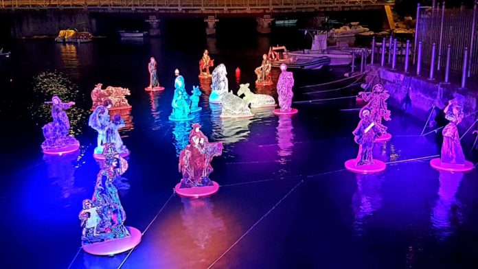 Si inizia alle ore 17:00 con la solenne benedizione da parte di S.E. Mons. Luigi Vari del “Presepe Galleggiante” presso la Torre di Mola, una delle novità di quest’anno un presepe post moderno dipinto a mano dall’ artista formiana Palma Aceto, una vera e propria innovazione per tutto il Sud Pontino, una natività totalmente realizzata sull’acqua.