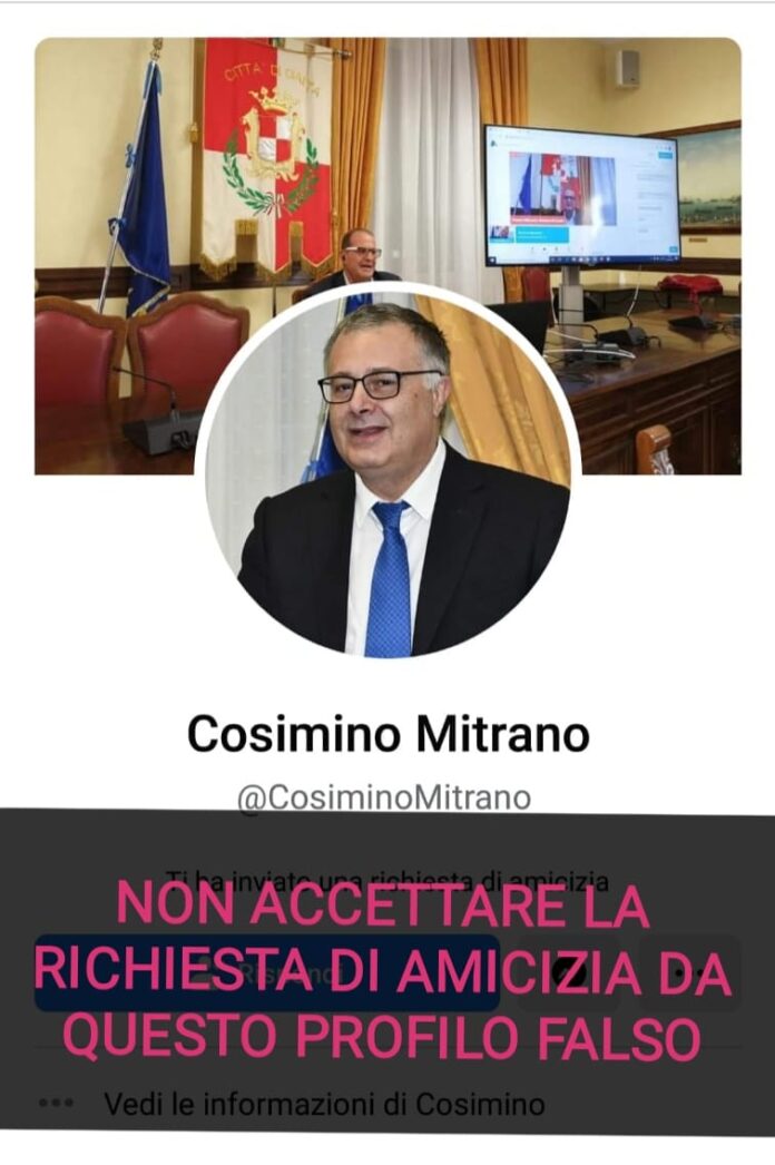 Lo comunica proprio il sindaco di Gaeta Cosmo Mitrano. Il primo cittadino nella sua pagina facebook annuncia: “si tratta di un profilo fake creato da qualcuno che nella vita non ha nulla da fare. NON ACCETTATE la richiesta di amicizia. Grazie per la collaborazione.”