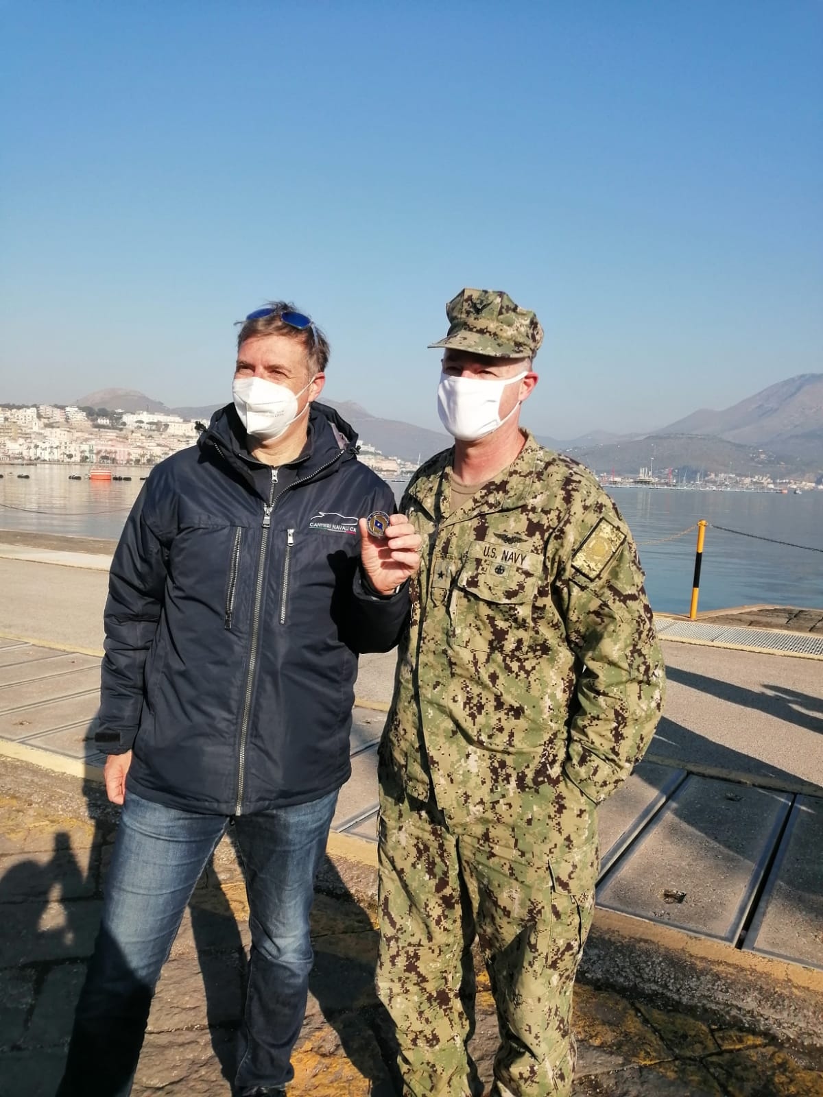 In considerazione dei meriti riscontrati nella realizzazione dei numerosi interventi che hanno riguardato la messa in efficienze del parco mezzi nautico della Base Nato di Gaeta, utilizzato per la sicurezza della Nave “Mount Whitney” Ammiraglia della VI Flotta U.S.A ormeggiata nel porto militare S. Antonio di Gaeta, e visto la cura e la celerità con cui sono stati recepiti le disposizioni emanate dall’Ufficio Contratti di Capodichino, che ha creduto nella difficile operazione di ripristino delle imbarcazioni in un tempo molto limitato, si è svolta nei pressi della Base Nato di Gaeta la cerimonia con la consegna di una medaglia in ricordo dell’evento all’Ing. CASA Massimiliano in presenza anche del Contrammiraglio RADM Scott Gray a comando della Navy region Europe, Sud Ovest Asia ed Africa (EURAFCENT), e del Comandante della Base Captain Kyle Alcot.