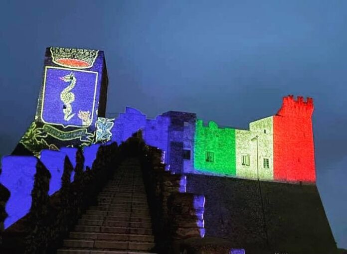 Per celebrare la Giornata dell’Unità nazionale, della Costituzione, dell’inno e della bandiera, il Castello di Itri è vestito della proiezione tricolore. Una facciata ospita invece lo stemma comunale. Il risultato della proiezione è emozionante e spettacolare.