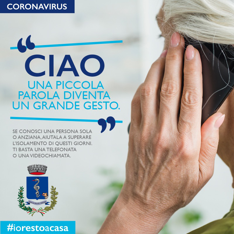“Ciao” una piccola parola diventa un grande gesto, avviata la campagna a sostegno delle persone sole e degli anziani per superare l’isolamento di questi giorni.