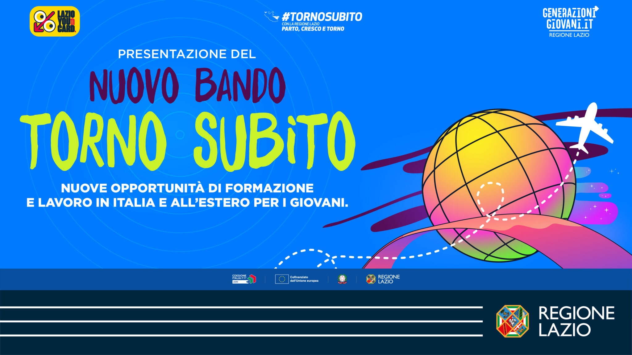 Torno Subito: opportunità di formazione per i giovani – Evento di Lancio del Bando TORNO SUBITO destinato a sostenere ragazze e ragazzi nei loro progetti di crescita personale e professionale mediante il finanziamento di esperienze formative e lavorative finalizzate all’acquisizione di competenze e conoscenze in contesti nazionali ed internazionali e il loro reimpiego nel territorio regionale. Il bando