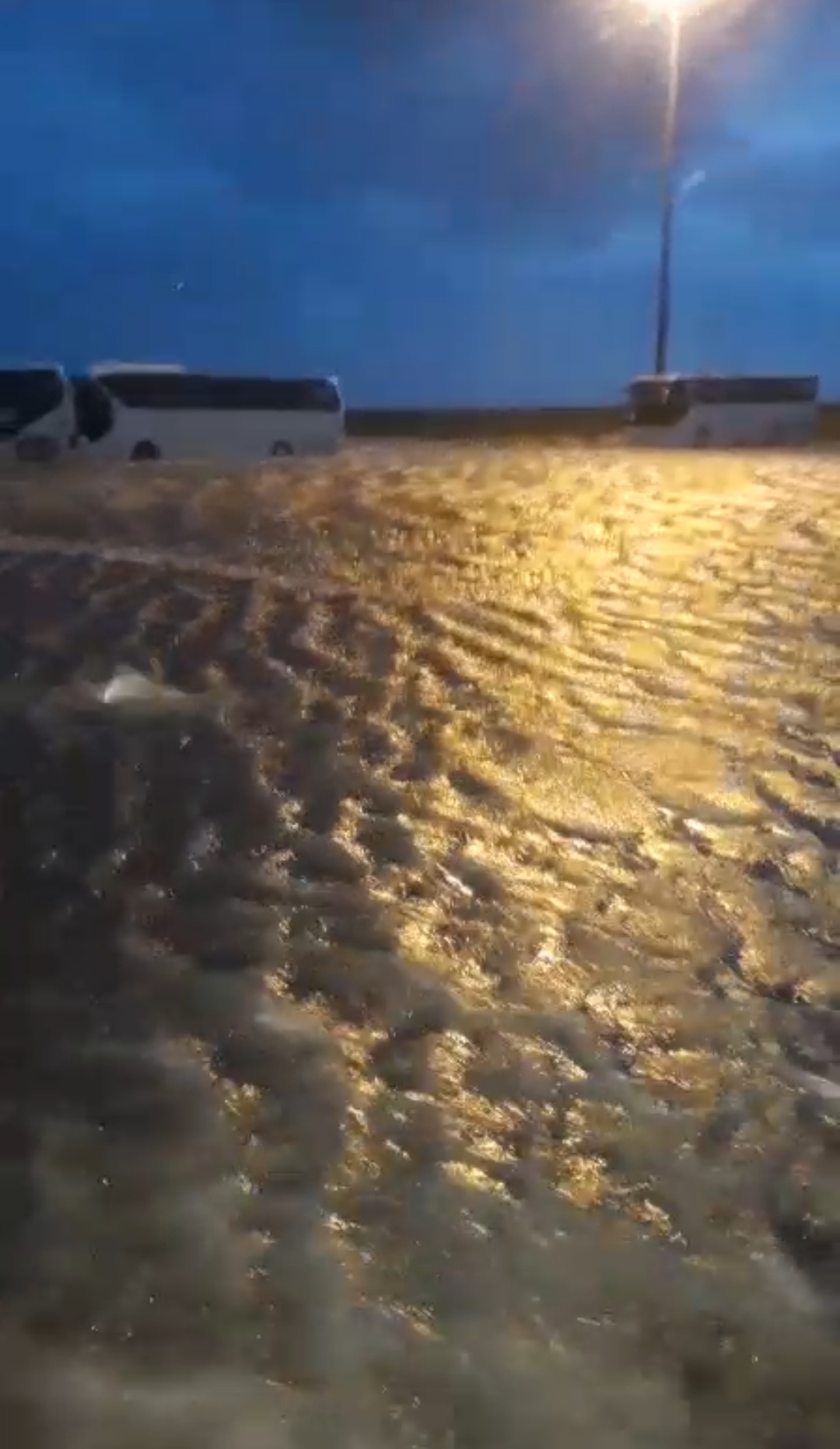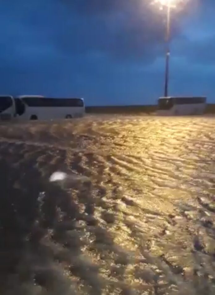 Le foto e il video immortalano un porto diverso da come lo conosciamo. Al centro della scena alcuni autobus inermi, mentre tutto intorno è mare. Sotto anche delle foto del porticciolo Caposele anch’esso sott’acqua.