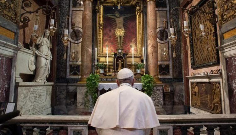 Quindi si è spostato dinanzi all’icona mariana e al crocifisso che ieri era stato trasportato nella Basilica di San Pietro.
