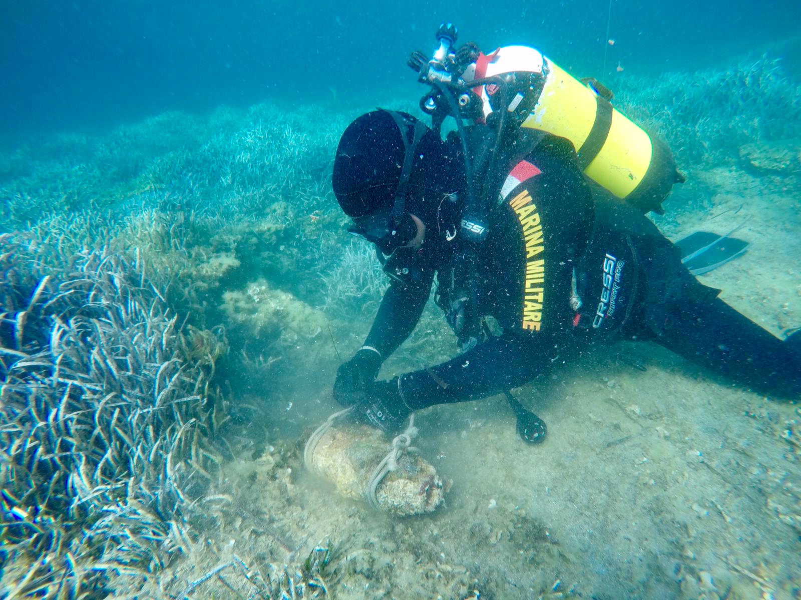 I Palombari dello S.D.A.I. di Napoli, chiamati ad intervenire su disposizione della Prefettura di Latina, si sono recati sul posto ed hanno effettuato un’attenta perlustrazione subacquea che ha confermato la presenza degli ordigni.