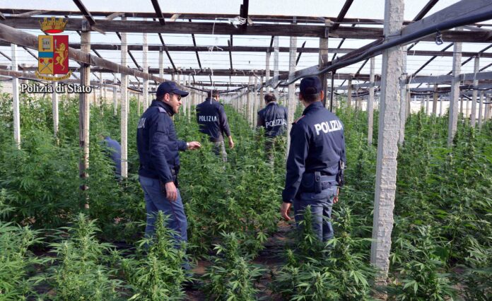 Rinvenuti 130 kg di marijuana essiccata. Arrestati in tre – Per tale motivo, nella mattinata del 5 dicembre scorso i poliziotti sono entrati all’interno della piantagione, trovandovi i tre soggetti. La conseguente perquisizione ha consentito di rinvenire all’interno di un container 130 kg di marijuana già essiccata e pronta per la vendita all’ingrosso, contenuta in grosse buste di cellophane. In totale, poi, sono state censite 2760 piante di cannabis, alcune delle quali con infiorescenze ed altre ancora in crescita. Atteso l’elevato principio di THC contenuto nella sostanza e nelle piante sequestrate, quindi, i tre soggetti sono stati tratti in arresto in attesa del giudizio di convalida; all’esito dell’udienza, tenutasi nella mattinata di mercoledì 7 dicembre, è stata disposta la custodia in carcere per il 48enne polacco ed il 30enne ucraino, mentre il polacco di 34 anni è stato liberato. Sono in corso ulteriori approfondimenti circa la destinazione dell’ingente quantità di stupefacenti sequestrata ed il coinvolgimento di ulteriori soggetti nella gestione dell’intero raccolto.
