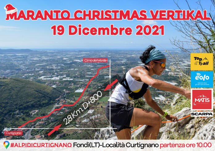 Fondi: Maranto Christmas Vertical – La contrada di Curtignano nuovamente protagonista dello sport “en plein air” con la “Maranto Christmas Vertical”: gara di trail in programma domenica 19 dicembre con atleti provenienti da tutta Italia. L’appuntamento sportivo, organizzato dalla Asd Top Trail con il patrocinio del Comune di Fondi e del Parco Naturale Regionale Monti Ausoni e Lago di Fondi, promette di regalare adrenalina e grandi emozioni ai protagonisti ma anche al pubblico dato che si snoderà “in verticale”, con vista su monti, laghi, mare, storia e natura, e che darà la possibilità ai supporter di incoraggiare atleti e amici nei punti più scenografici e panoramici del percorso. Il tracciato riprende infatti quello della Maranto Sky Race, gara ormai famosa nel settore e non solo, che la Asd Top Trail riproporrà il prossimo 5 giugno 2022.