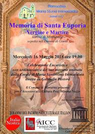 Nei giorni che trascorsero insieme poterono parlare liberamente di Gesù il Cristo e praticare la fede secondo i riti cristiani. Poi accadde quello che si temeva: una mattina giunse un drappello di legionari che si presentarono a Flavia Domitilla e, dopo che il centurione ebbe salutato romanamente la principessa imperiale, le intimarono, anche se con modi formali rispettosi della nobiltà di lei, di seguirli tutti sulla nave ancorata nel porto, insieme a tutto il suo seguito, che non prevedeva il coinvolgimento di Euporia. Destinazione il porto di Terracina in quanto dovevano essere ascoltati ed eventualmente giudicati dal magistrato del luogo per ordine dell’imperatore. E qui trovarono la morte. Appresa la notizia anche Euporia, giudicata a Gaeta, non arretrò dinanzi al suo giudice. La sua vita non è certo un inno alla morte, ma l’estremo grido, il più forte appello, la sublime rivelazione della sete e della fede nella vita. Un gesto di coerenza cristiana che fa tremare il cuore e che rimanda ai tanti martiri di ieri e di oggi che non si piegavano alla divinità dell’imperatore e di oggi che non si inchinano a nessun potere della terra, non vendono la propria dignità a un vile e vischioso rapporto di scambi, di favori, di affari, di bugie, di interessi negoziati nell’ ombra, a danno dei più. Il Vangelo ripudia tutto ciò e il credente inorridisce e dice “no”: questo è il suo martirio. Gesù è il primo a darne l’esempio, rifiutando di assumere tutti i Regni del mondo, pur di non inchinarsi a chi glieli darebbe sottobanco. La sua Croce è testimonianza di un corpo che si spende totalmente per il bene dell’umanità, perché ognuno abbia riconosciuta e riscattata la propri dignità, la libertà, la cittadinanza sul suolo terrestre. Ad oggi è l’unica santa nata nel territorio dell’arcidiocesi di Gaeta.