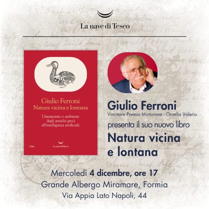 Giulio Ferroni – Mercoledì 4 dicembre alle ore 17:00 presso la sala convegni del Grande Albergo Miramare, si terrà un nuovo incontro con Giulio Ferroni, vincitore del Premio Minturnae – Ornella Valerio, autore del libro “Natura vicina e lontana. Umanesimo e ambiente dagli antichi greci all’intelligenza artificiale” edito da: La nave di Teseo. Introduce e modera la presentazione del libro Michele Graziosetto, già preside del Liceo scientifico “Leon Battista Alberti” di Minturno e presidente della Università del Golfo Formia Gaeta Minturno – Centro Studi Minturnae. Giulio Ferroni, professore ordinario di Letteratura italiana presso l’Università “Sapienza” di Roma, ha scritto numerosi saggi di letteratura, collabora con riviste e quotidiani. E’ noto critico letterario, storico della letteratura e saggista. Ha pubblicato vari testi su Niccolò Machiavelli, Pietro Aretino, Ludovico Ariosto, Dante Alighieri e molto altro. Un nuovo appuntamento da non perdere per l’alta qualità della presentazione e per i numerosi spunti collettivi di riflessione. Ingresso libero. In quella stessa sede sarà possibile, per chi ne avesse piacere, iscriversi alla UniGolfo.