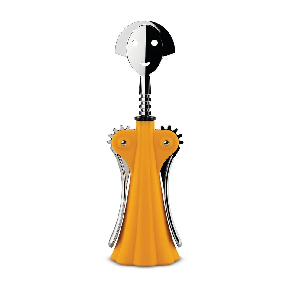 Il cavatappi Anna G. evoca la donna ed è un ironico omaggio dell’artista Mendini al volto e alla silhouette dell’amica designer Anna Gili. Quest’ultima talentuosa artista del disegno industriale, che crea vasi e centrotavola decorati dalle forme sinuose (straordinari quelli in vetro di Murano soffiato).