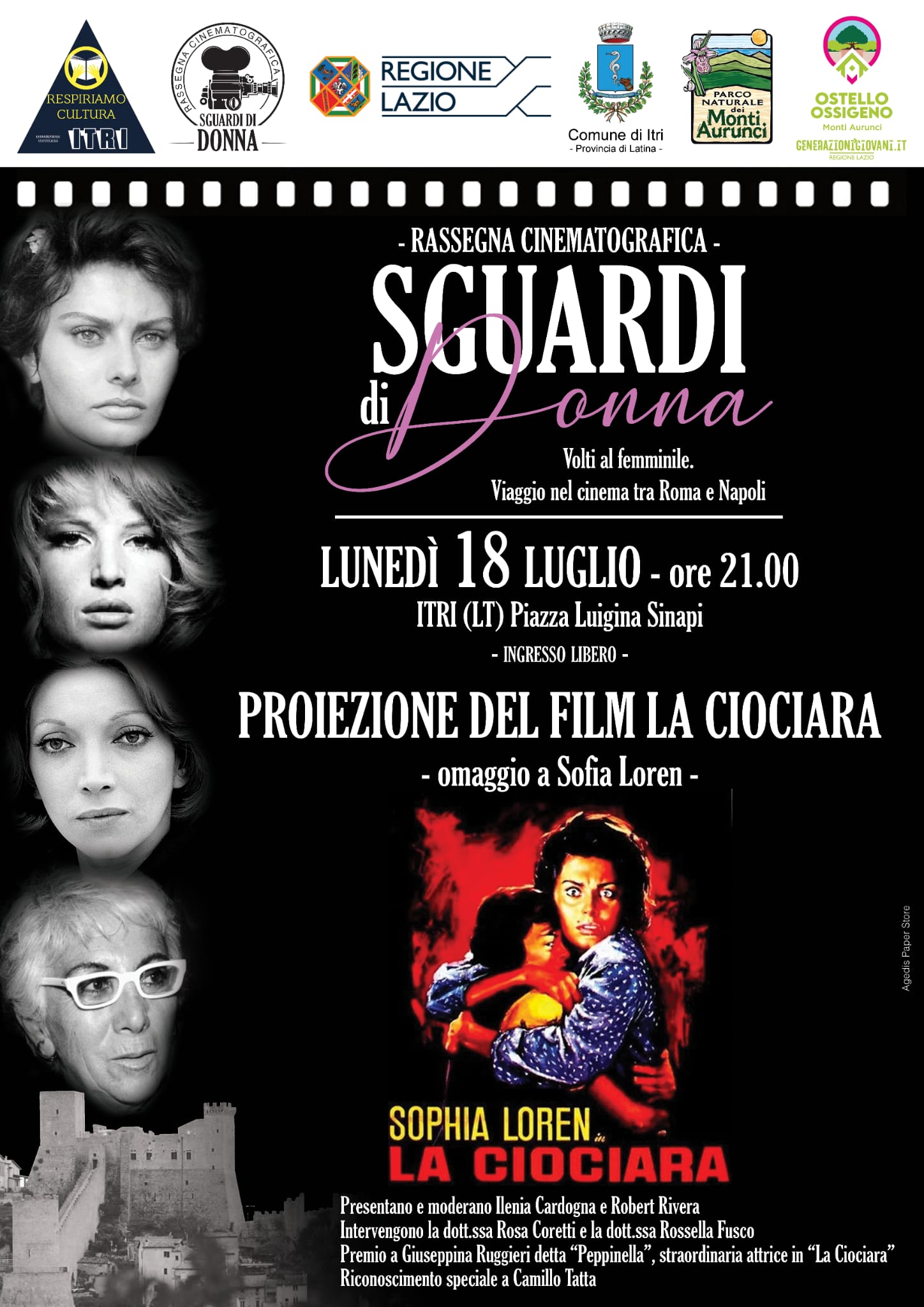 Lunedì 18 luglio alle 21 in piazza a Itri Sguardi di Donna presenta il film del 1960 – un capolavoro – girato da Vittorio De Sica nella località itrana. Partecipano – come si evince dalla locandina – vari esperti che daranno un loro contributo importante alla migliore lettura dell’evento e del contesto storico. Itri sarà sempre legata e grata a questo film che rimarrà per sempre nella storia del cinema mondiale. Un omaggio a tutte le donne, ai bambini, agli uomini e ai sacerdoti stuprati dalle truppe coloniali francesi, in particolare marocchini, turnisni e algerini. Uno degli esempi più vergognosi ai danni di poipolazione civile inerme.