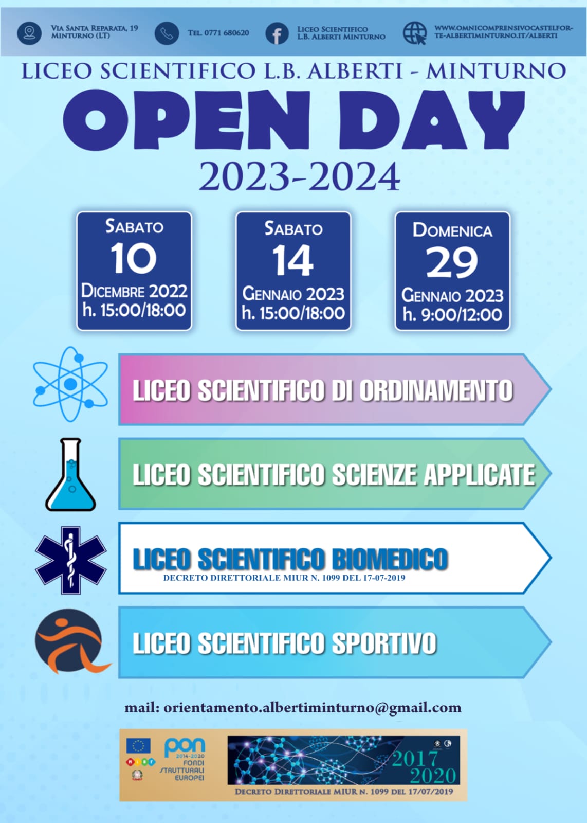 Un Liceo Scientifico all’avanguardia non solo nella provincia pontina ma anche a livello nazionale. Quattro indirizzi: quello tradizionale con la lingua latina, quindi scienze applicate, biomedico e sportivo. Gli Open Day consentiranno una migliore conoscenza nell’interesse dei nuovi iscritti e dei loro genitori.