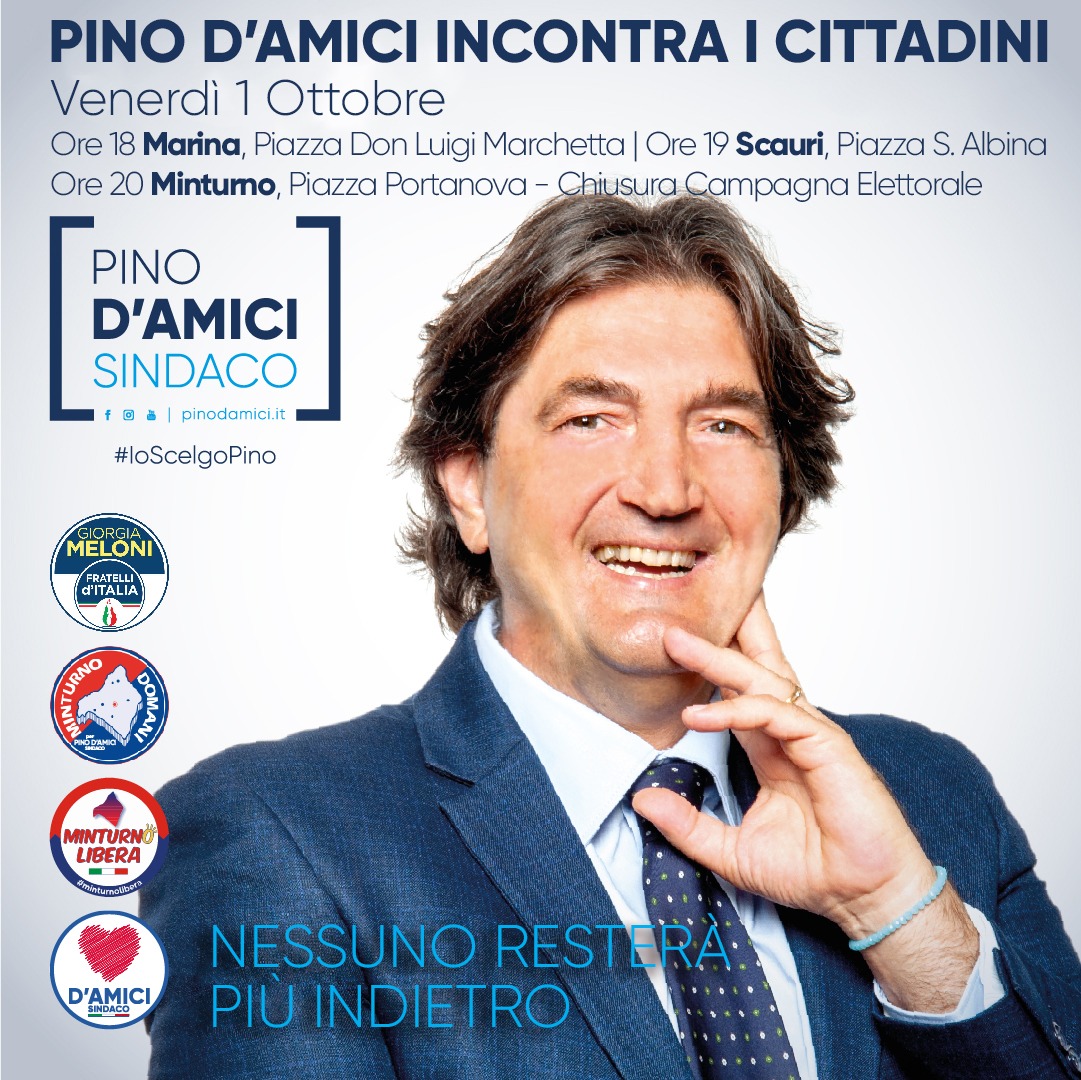 Minturno: Pino D’Amici incontra i cittadini, tutti gli appuntamenti di venerdì 1 ottobre sera