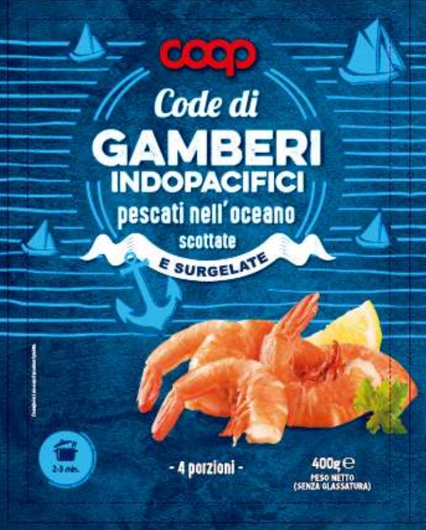 Possibile presenza di allergeni non dichiarati in etichetta. Richiamo Alimentare dal Ministero della Salute – Nuovo richiamo alimentare per rischio presenza di allergeni pubblicato sul sito del Ministero della Salute in data 21/11/2023 (il richiamo è datato 20-11-2023) e riguarda dei gamberi. Denominazione di vendita: CODE DI GAMBERI INDOPACIFICI SCOTTATE E SURGELATE, Marchio del prodotto: COOP, Nome o ragione sociale dell’OSA a nome del quale il prodotto è commercializzato: Coop Italia S.C. Lotto di Produzione: 2H11, data di scadenza o termine minimo di conservazione: 10-08-2024, Descrizione peso/volume unità di vendita: 400 g, Nome del produttore: Mangala Marine Exim India PVT.LTD. Marchio di identificazione dello stabilimento/del produttore: 701, Sede dello stabilimento: India.