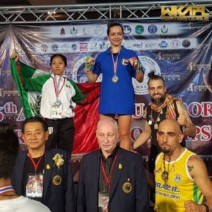 Racconta: “Per me è importante studiare in una scuola a indirizzo sportivo. Io riesco a conciliare lo studio e lo sport, mia madre (Monica Vacca) mi ha portato per la prima volta in palestra quando avevo soltanto cinque anni. E in preparazione del campionato mondiale i docenti mi sono venuti incontro agevolandomi nelle interrogazioni e nei compiti in classe. Lo sport che pratico d’altronde è costruito sulla disciplina, il sacrificio e la tenacia. Il mio sogno è diventare istruttore e per questo inizierò appena possibile il corso federale che mi consenta tutto ciò”. La sua seconda casa è ormai la Maluma Martial Art e sogna di ripagare il suo maestro Mauro Magliocchetti e i compagni con eventi sportivi che diano lustro alla palestra. Dedica la sua medaglia d’oro alla famiglia che gli è stata sempre vicina: il papà Davide, la mamma Monica, il fratello Andrea. I thailandesi si sono inchinati a questa ragazza del Lazio Meridionale rendendole gli onori con l’ossequio di pregio che solo gli orientali sanno concedere con una grazia e solennità particolari.